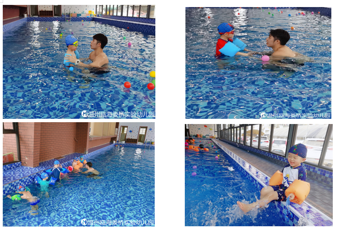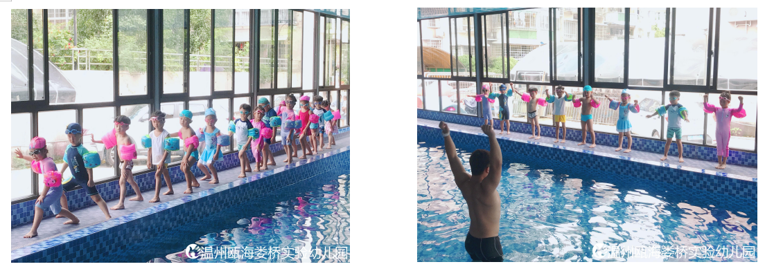 愛玩水是孩子的天性,我園為了讓孩子們在戲水同時接觸“游泳領域”、鍛煉孩子們的游泳技能,為學習游泳打下基礎。幼兒園國際班每周周開設一次水育課程,在符合幼兒生理及心理發(fā)展需求的水環(huán)境中,通過與幼兒進行快樂互動、引導、情感交流,對其進行培育。在這個過程中,不僅訓練了孩子們的肌肉力量,平衡感,心肺功能,水感和水性,也培養(yǎng)孩子們的自信、勇敢品質(zhì)。